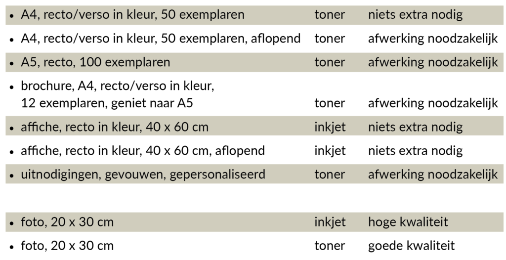 Je print regelmatig flyers op A5, je print af en toe wat handleidingen op A4, je overweegt om zelf naamkaartjes te printen, je maakt -last minute- liever zelf de maandelijkse prijslijsten.